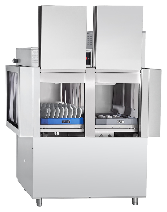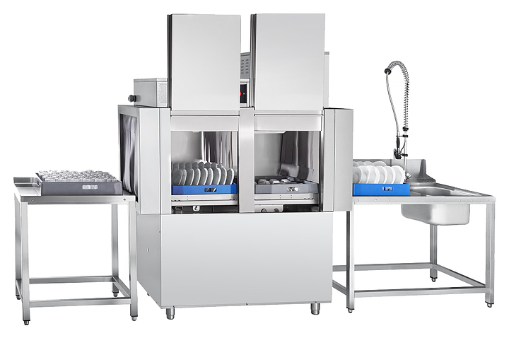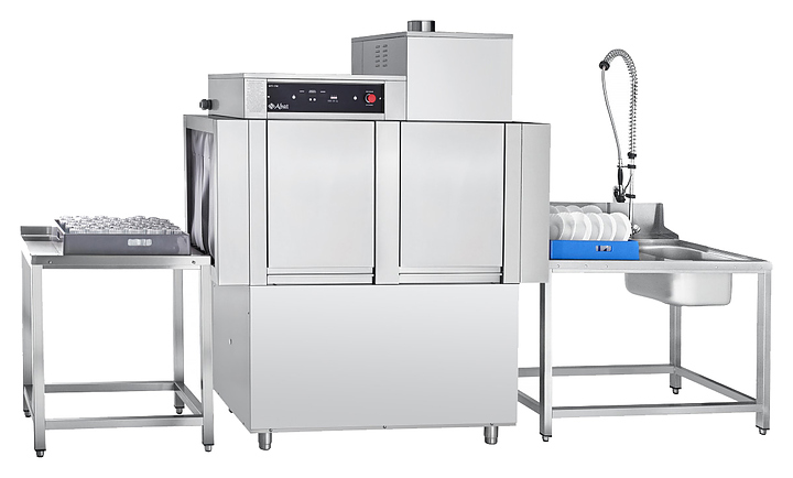 Туннельная посудомоечная машина Abat МПТ-1700-01 используется на предприятиях общественного питания и торговли для мойки тарелок, стаканов, бокалов, столовых приборов, а также гастроемкостей и противней. Модель оснащена электронной панелью управления и ванной со скругленными углами, облегчающими гигиеническую уборку машины. Детали, контактирующие с водой, и облицовка выполнены из нержавеющей стали AISI 304, моющие и ополаскивающие разбрызгиватели - из нержавеющей стали AISI 304 и AISI 321. Комплектация: