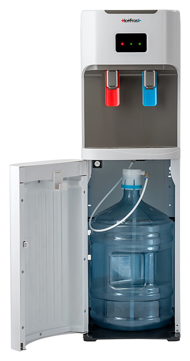 Кулер HotFrost V115AE предназначен для разлива, нагрева и охлаждения питьевой воды в домашних условиях, офисах, отелях и т.д. Нижняя загрузка - удобный и эстетичный способ установки бутыли, который защитит воду от прямых солнечных лучей и сохранит ее свежей и полезной. Благодаря лаконичным линиям и простым формам кулер впишется в интерьер любого дизайна. Особенности: