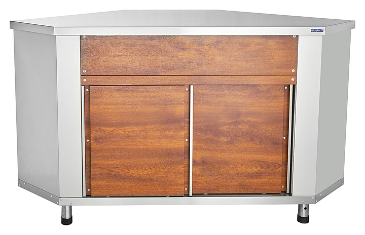 Поворотный модуль Abat МП-90Т-01 используется в составе линии раздачи Премьер для выкладки хлебобулочных, кондитерских изделий, посуды и столовых приборов на предприятиях общественного питания и торговли. Конструкция выполнена из металла, кашированного под дерево. Дополнительные характеристики: