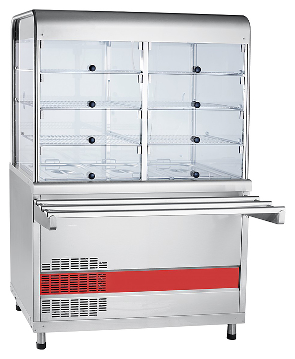 Прилавок-витрина Abat ПВВ(Н)-70КМ-С-02-НШ используется в составе линии раздачи Аста для демонстрации, охлаждения, кратковременного хранения блюд, холодных закусок и напитков на предприятиях общественного питания и торговли. Модель оснащена регулируемыми по высоте ножками. Конструкция выполнена из металла, кашированного под дерево. Особенности: