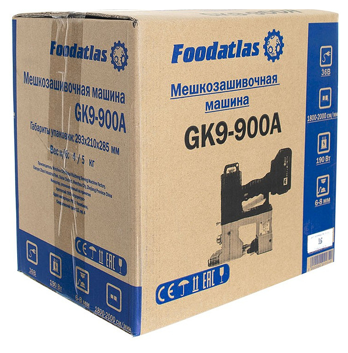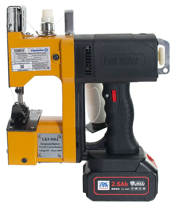 Мешкозашивочная машина Foodatlas GK9-900А используется на предприятиях общественного питания и торговли для прошивания полипропиленовых, полиэтиленовых и бумажных мешков. Конструкция позволяет работать как в горизнтальном, так и в вертикальном состоянии. Модель оснащена безопасной ручкой и витым проводом. Корпус выполнен из окрашенного металла. В комплект поставки входят выносной аккумулятор и устройство для подзарядки. Особенности: