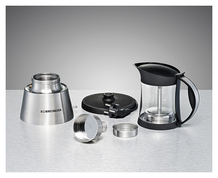 Гейзерная кофеварка Rommelsbacher EKO 376/G используется в квартирах, частных домах, кафе и ресторанах. Модель оснащена функцией автоматического отключения, скрытым нагревательным элементом и защитой от перегрева и кипения воды. Корпус и фильтр-вставки выполнены из нержавеющей стали, кувшин - из термостойкого стекла Schott Duran ®. Прибор имеет cтильный современный дизайн, удобен и прост в использовании. В комплект поставки входят фильтр-вставки на 3 и 6 чашек. Особенности: