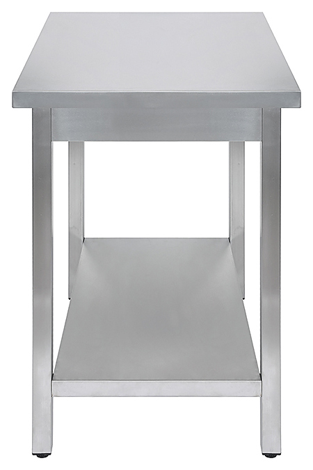 Островной производственный стол Luxstahl СПУ-7/7 предназначен для раскатки теста и обработки ингредиентов для приготовления блюд на предприятиях общественного питания и торговли. Каркас и столешница выполнены из нержавеющей стали AISI 430, ножки - из трубы AISI 430 40x40 мм. Особенности: