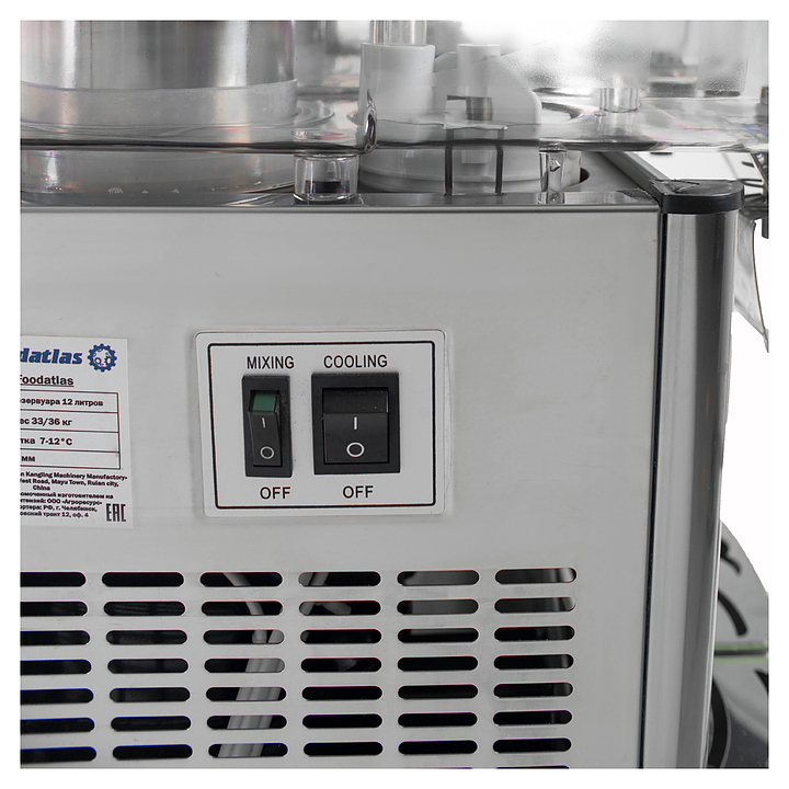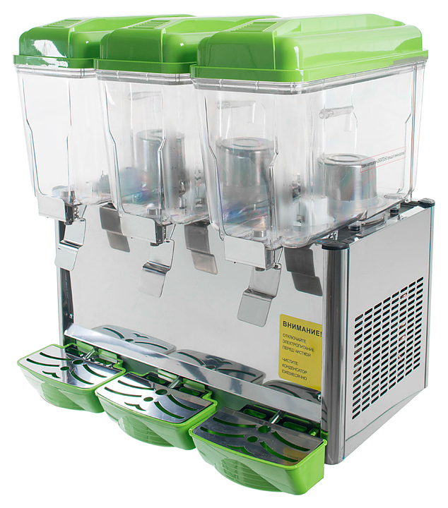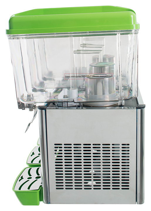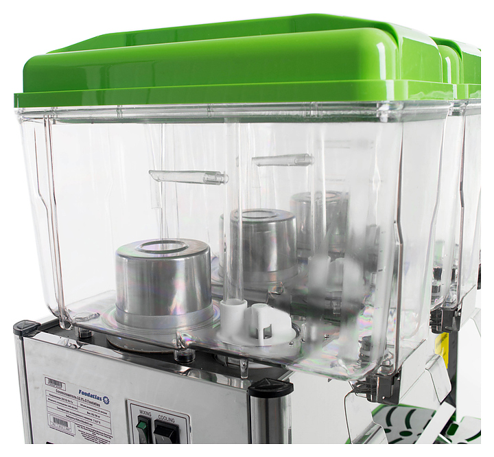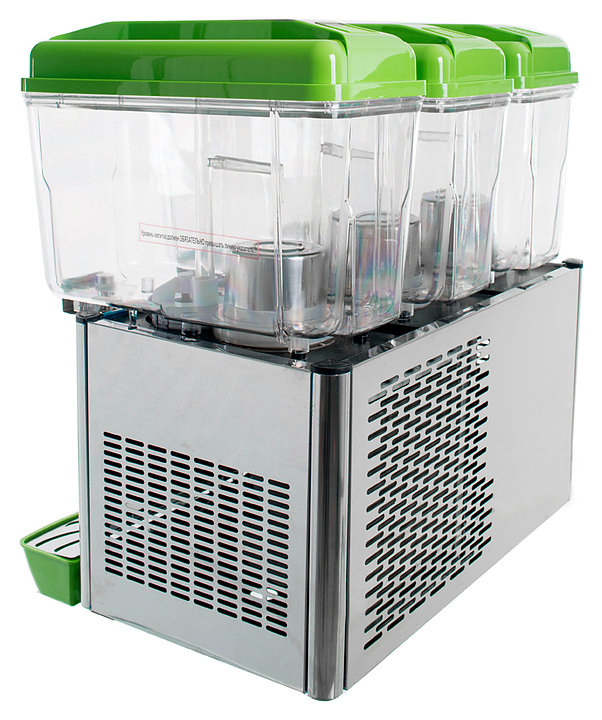 Сокоохладитель Foodatlas 12 JL-3 используется на предприятиях общественного питания и торговли для хранения в охлажденном состоянии и последующей дозированной подачи различных напитков из фруктов, молока и морсов. Имеется возможность регулировать температуру напитков. Корпус выполнен из нержавеющей стали, контейнеры - из пластика. Особенности: