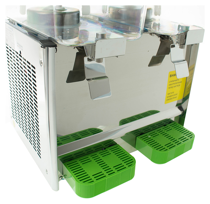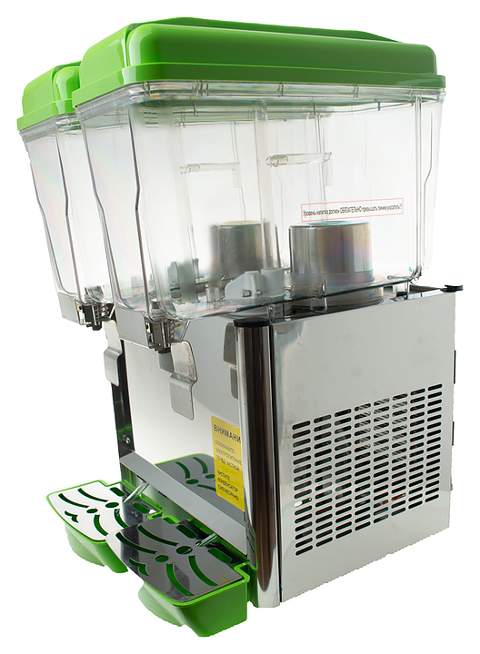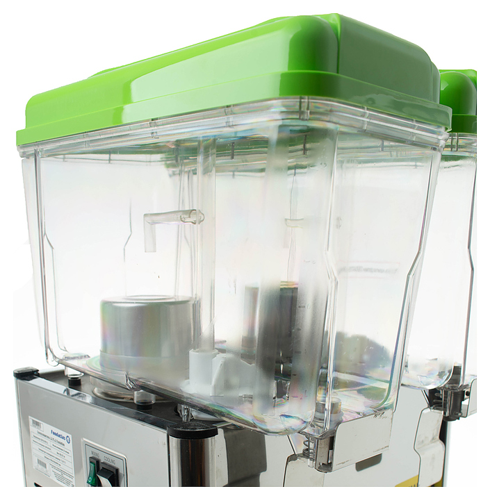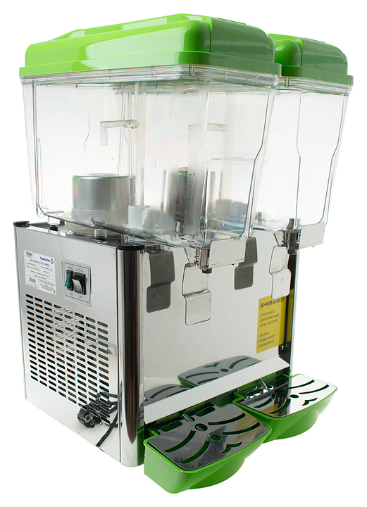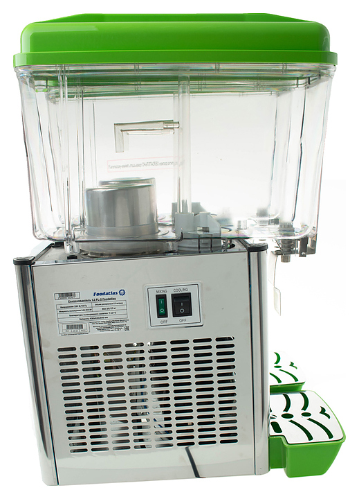 Сокоохладитель Foodatlas 12 JL-2 используется на предприятиях общественного питания и торговли для хранения в охлажденном состоянии и последующей дозированной подачи различных напитков из фруктов, молока и морсов. Имеется возможность регулировать температуру напитков. Корпус выполнен из нержавеющей стали, контейнеры - из пластика. Особенности: