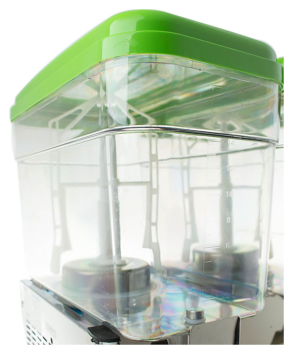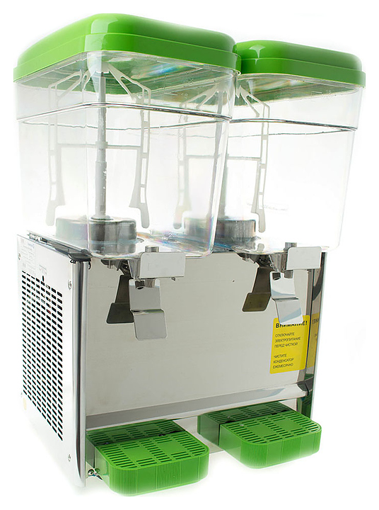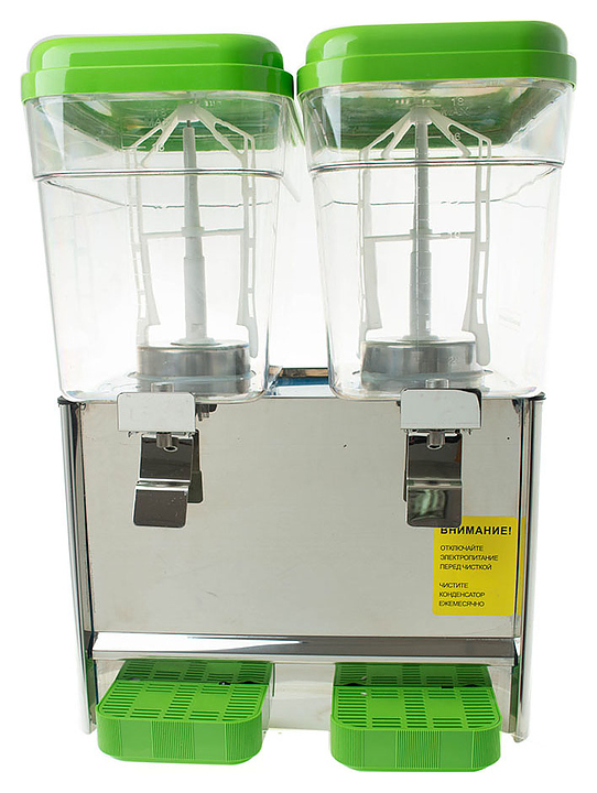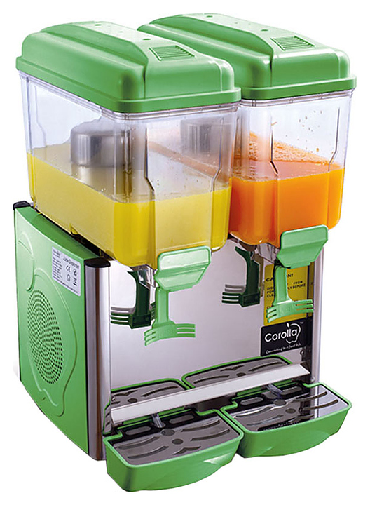 Сокоохладитель Foodatlas JA 18-2 используется на предприятиях общественного питания и торговли для хранения в охлажденном состоянии и последующей дозированной подачи различных напитков из фруктов, молока и морсов. Имеется возможность регулировать температуру напитков. Корпус выполнен из нержавеющей стали, контейнеры - из пластика. Особенности: