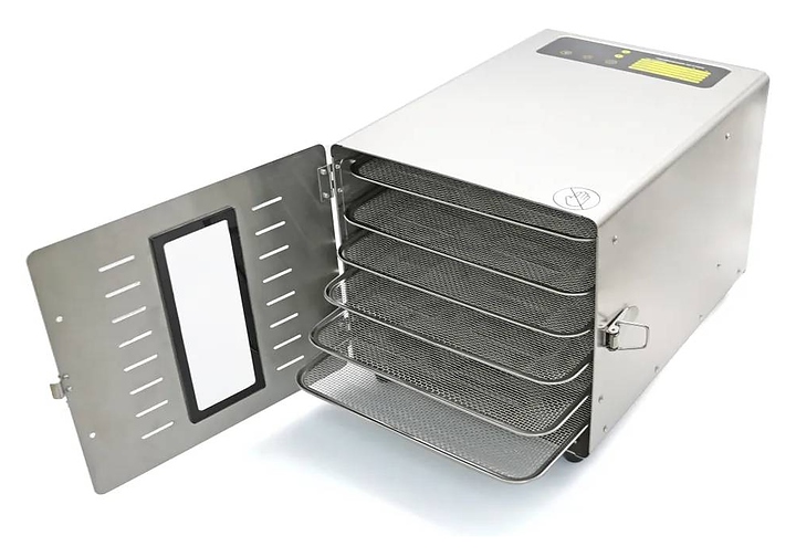 Дегидратор Airhot FD-6 используется на предприятиях общественного питания и торговли, в производственных цехах, а также в домашних условиях для сушки овощей, грибов, фруктов и ягод. Модель оснащена электронной панелью управления. Корпус выполнен из нержавеющей стали. В комплект поставки входят 6 подносов. Особенности: