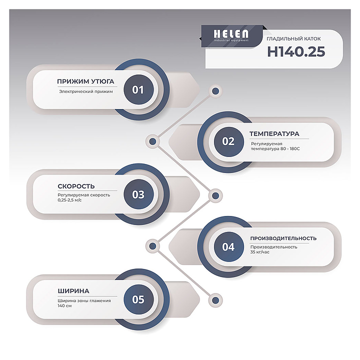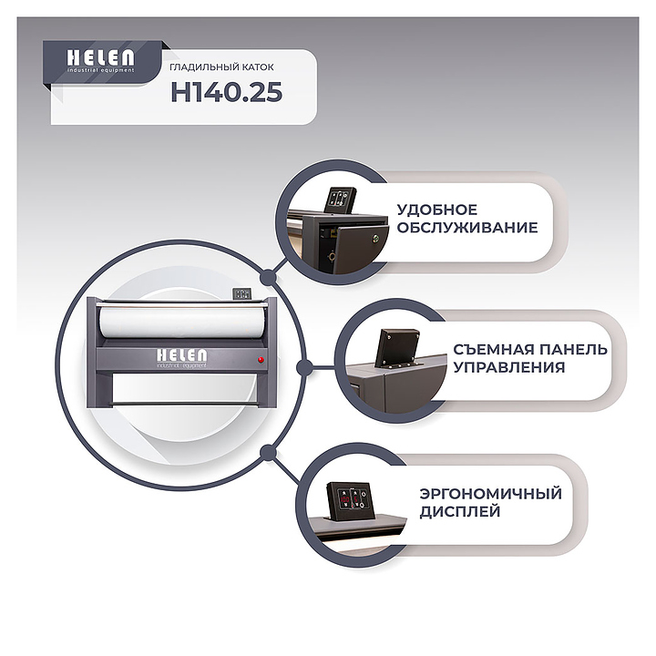 Гладильный каток HELEN H 140.25 используется в прачечных, гостиницах, салонах красоты, больницах и детских учреждениях для глажения различного белья с остаточной влажностью 15-20%. Оборудование имеет простую конструкцию, безопасно, надежно и подходит для применения даже неопытными работниками. Выглаженное белье возвращается в сторону оператора, позволяя устанавливать каток у стены. Мульда выполнена из нержавеющей стали, обмотка вала - металлическая шерсть. Особенности: