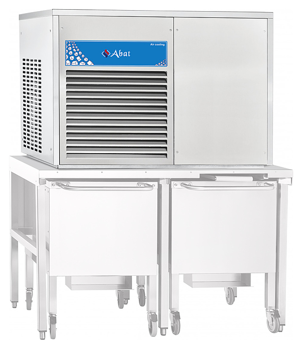Льдогенератор Abat ЛГ-1200Ч-02предназначен для производства чешуйчатого льда на предприятиях общественного питания и торговли. Модель оснащена системой автоматического отключения в случае отсутствия подачи воды на охлаждение конденсатора, утечки хладагента, повышенной нагрузки на мотор-редуктор и переполнения бункера льдом и регулируемыми по высоте ножками. Конструкция выполнена из высококачественной нержавеющей стали. Эксплуатация льдогенератора допускается при температуре окружающей среды от 10 до 43 °C и относительной влажности от 40 до 70%. В комплект поставки входит совок для сбора льда. Рекомендуется дополнительно приобрести водоумягчитель и фильтр-систему для очистки и смягчения воды. Подробннее о необходимости водоподготовки читайте здесь. Особенности: Циклы работы: