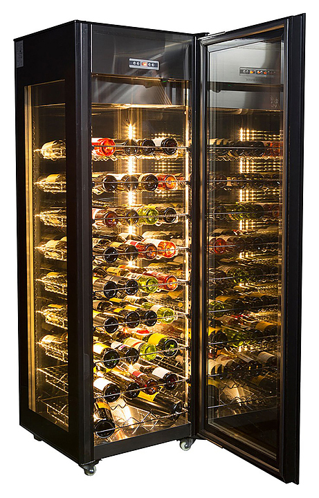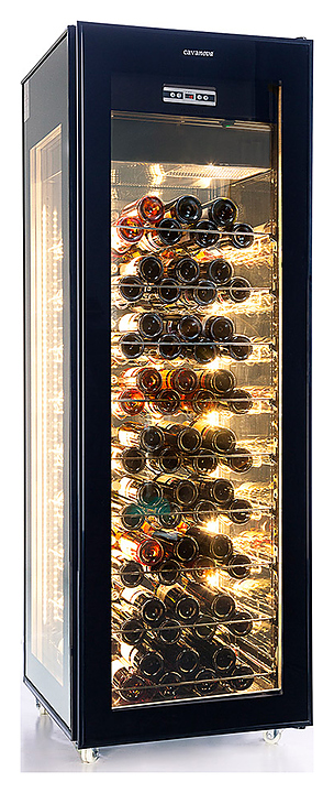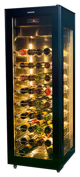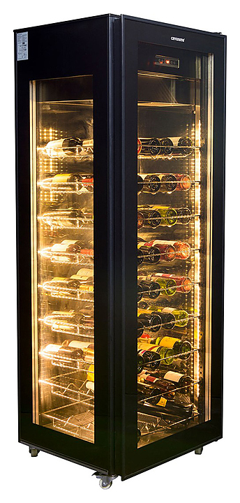 Винный шкаф Cavanova CVVT400 создает оптимальные условия для сохранения всех вкусовых свойств разливного вина в барах, ресторанах, специализированных магазинах, частных домах или квартирах. Модель оснащена светодиодной подсветкой мягкого белого цвета. Корпус выполнен из черного металла, дверь и стенки - из двойного тонированного стеклопакета с УФ-фильтром, полки - из хромированного металла. Особенности:
