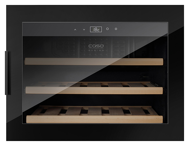 Встраиваемый винный шкаф CASO WineSafe 18 EB предназначен для охлаждения и длительного хранения бутилированного и разливного вина в частных домах, квартирах, отелях и офисах. Модель оснащена панелью управления c белым LED-дисплеем, показывающим текущую температуру, и 3 деревянными выдвижными полками. Дверная рама и ручка выполнены из черной стали, дверца - из 3-слойного стекла с ультрафиолетовым фильтром. Особенности: