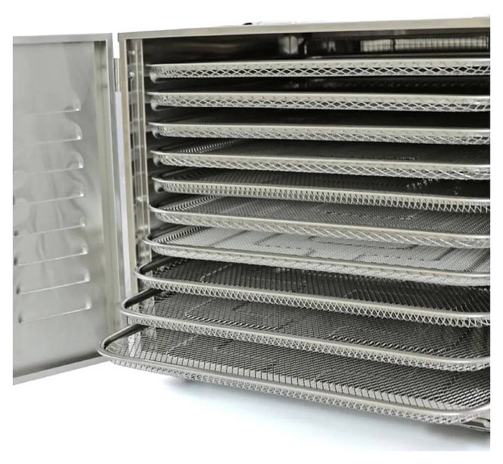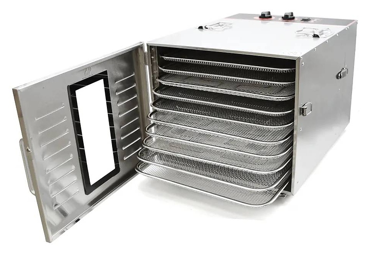 Дегидратор Airhot FD-10G используется на предприятиях общественного питания и торговли, в производственных цехах, а также в домашних условиях для сушки овощей, грибов, фруктов и ягод. Модель оснащена электромеханической панелью управления. Корпус выполнен из нержавеющей стали. В комплект поставки входят 10 решеток. Особенности: