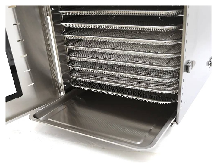 Дегидратор Airhot FD-16G используется на предприятиях общественного питания и торговли, в производственных цехах, а также в домашних условиях для сушки овощей, грибов, фруктов и ягод. Модель оснащена электромеханической панелью управления. Корпус выполнен из нержавеющей стали. В комплект поставки входят 16 решеток. Особенности: