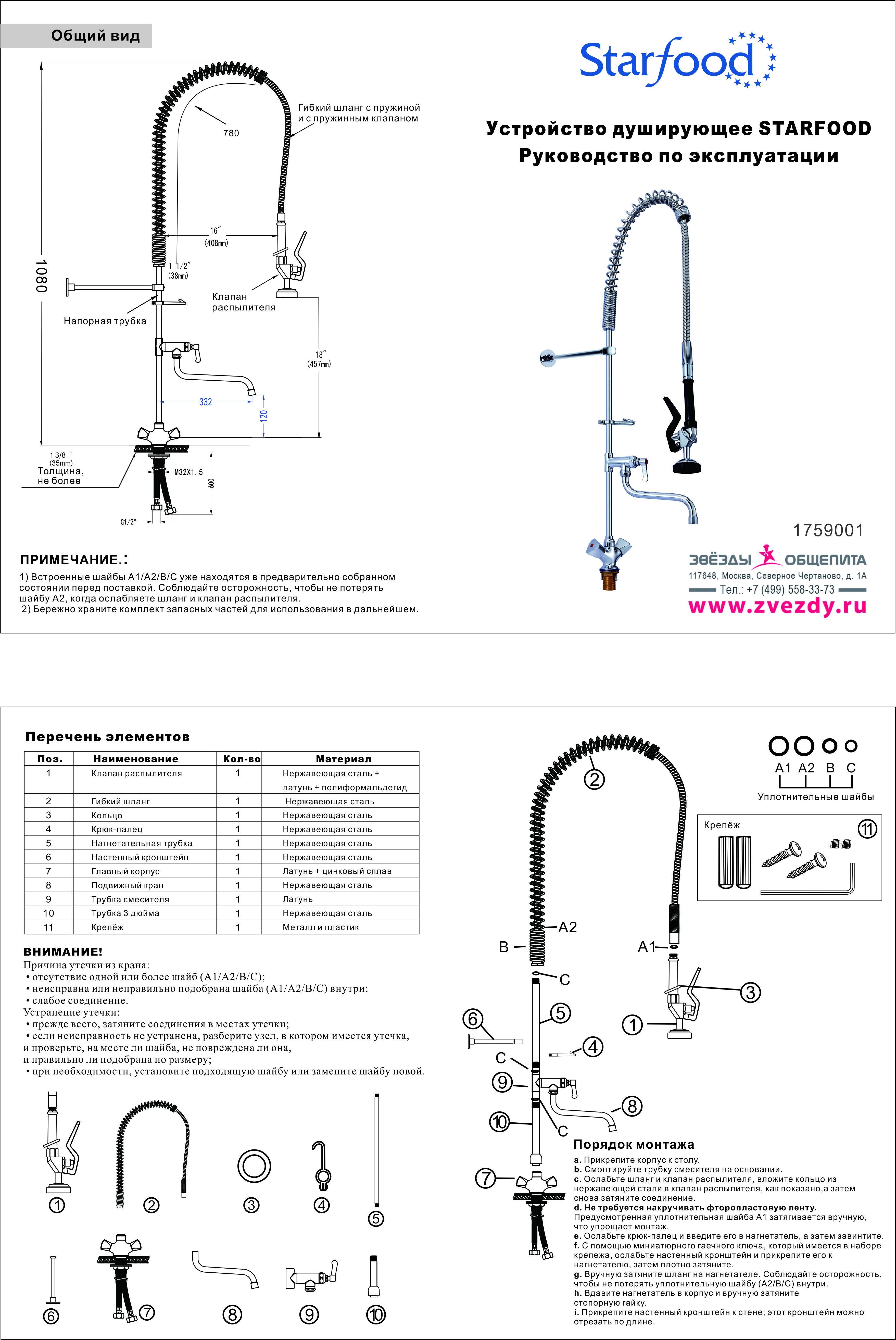 Душирующие устройство Starfood PR-806 предназначено для удобного удаления крупных остатков пищи с кухонной посуды и инвентаря перед загрузкой в посудомоечную машину в моечных цехах на предприятиях общественного питания. Корпус выполнен из хромированной латуни и цинкового сплава, трубка смесителя - из латуни, крепеж - из металла и пластика, все остальное - из нержавеющей стали. В комплект поставки входят устройство душирующее, излив, смеситель, подводка 600 мм - 2 шт и крепеж к стене. Внимание! Информация о товарах, размещенная на сайте, не является публичной офертой, определяемой положениями Части 2 Статьи 437 Гражданского кодекса Российской Федерации. Производители вправе вносить изменения в технические характеристики, внешний вид и комплектацию товаров без предварительного уведомления. Уточняйте характеристики у наших менеджеров перед оформлением заказа. |