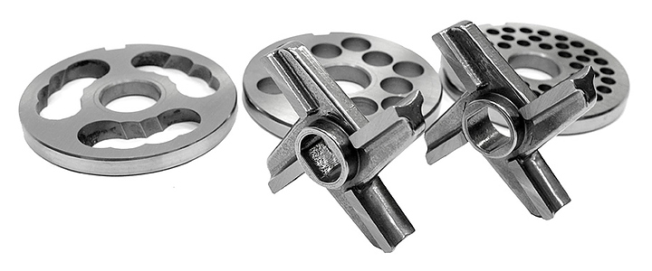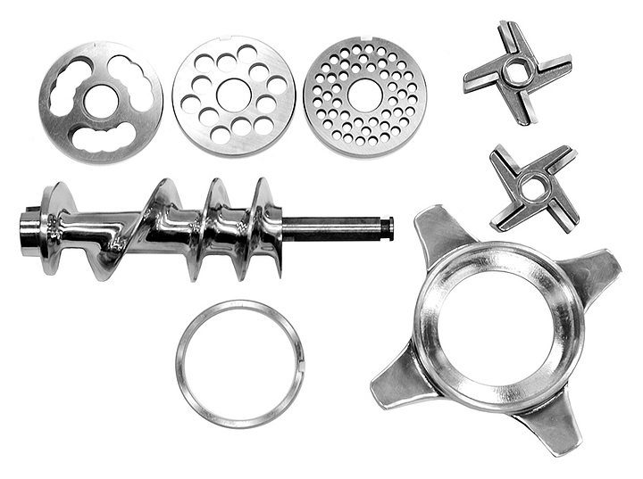 Мясорубка Kocateq GHM32I предназначена для измельчения мяса и рыбы на фарш, повторного измельчения котлетной массы и набивки колбас на предприятиях общественного питания и торговли. Корпус выполнен из нержавеющей стали AISI 201, шнек и хобот - из нержавеющей стали AISI 202, ножи - из легированной инструментальной стали, толкатель - из пластика. В комплект поставки входят 2 сменные решетки с отверстиями диаметром 5,5 мм и 7 мм, пластиковый толкатель. Особенности: