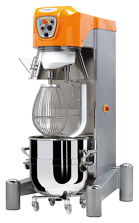 Напольный планетарный миксер Starmix PL100NVAF предназначен для взбивания кондитерских масс: кремов, суфле, муссов, а также бисквитного, дрожжевого, песочного, блинного, заварного теста на предприятиях общественного питания и торговли, в пекарнях и кондитерских. Модель оснащена электромеханической панелью управления. Корпус выполнен из окрашенного металла, защитный кожух - из пластика. Комплектация: