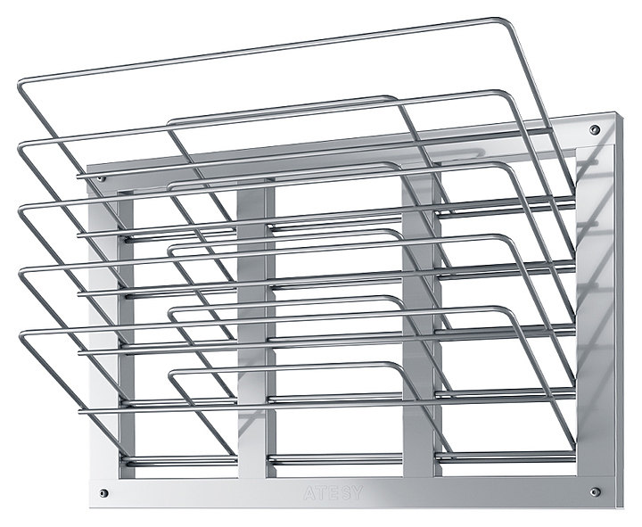Настенная полка ATESY ПКД-С-600.240-5-02-Г серии Стандарт используется для сушки и хранения разделочных досок на предприятиях общественного питания и торговли. Полка выполнена из нержавеющей стали AISI 430, отделения - из нержавеющего прутка AISI 304. В комплект поставки входит крепеж для стены. Особенности: