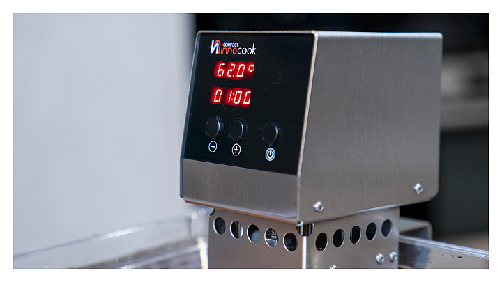 Ротационный кипятильник InnoCook Compact предназначен для приготовления широкого спектра блюд по технологии Sous Vide на предприятиях общественного питания и торговли. Модель оснащена электромеханической панелью управления. Корпус полностью выполнен из пищевой нержавеющей стали. Особенности: