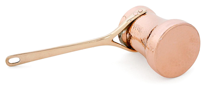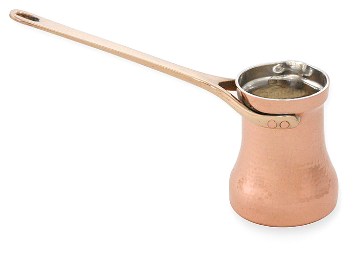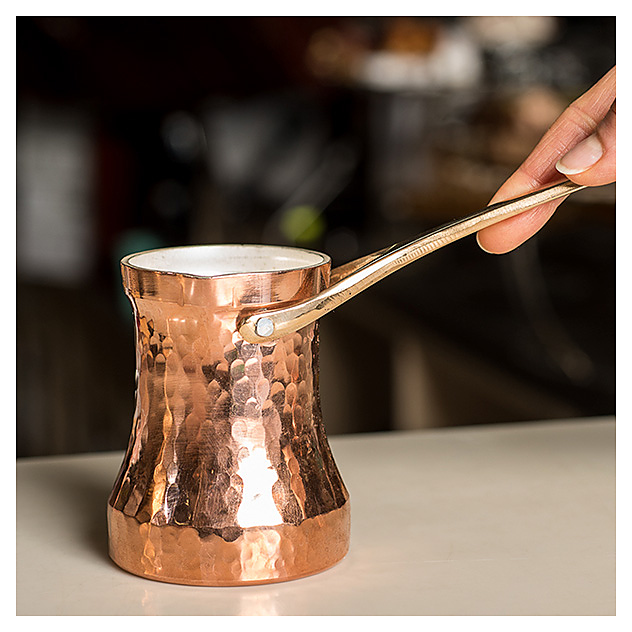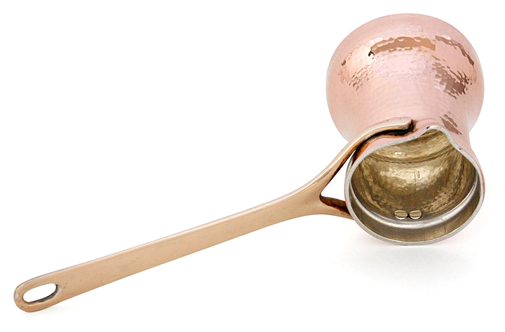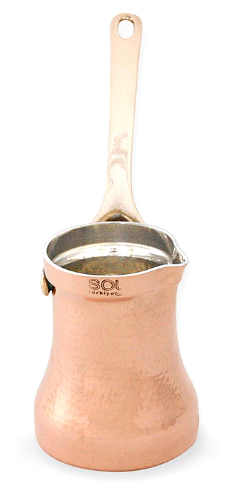 Джезва SOY С3G Family используется для приготовления заварного кофе на газовых и электрических плитах, портативных горелках, песке или углях в кафе, ресторанах, квартирах и частных домах. Изделие оснащено расположенной под углом литой ручкой и носиком. Бесшовная кованная емкость выполнена из листа меди толщиной 1,5 мм, ручка - из бронзы, клепки крепления ручки - из меди. Особенности: