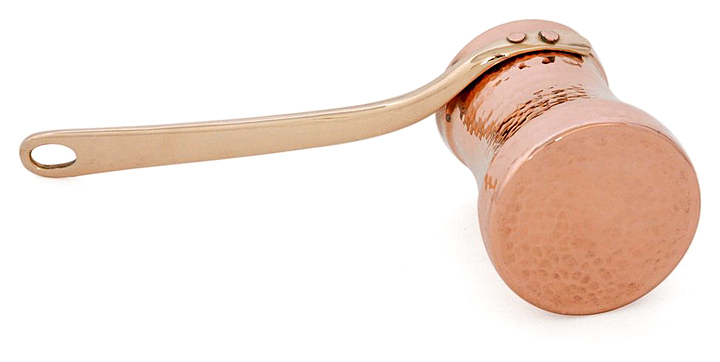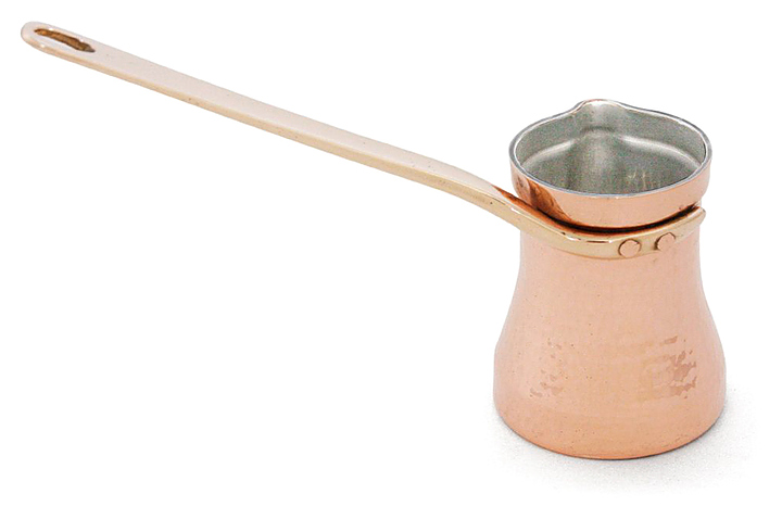 Джезва SOY С2G Egoist используется для приготовления заварного кофе на газовых и электрических плитах, портативных горелках, песке или углях в кафе, ресторанах, квартирах и частных домах. Изделие оснащено расположенной под углом литой ручкой и носиком. Бесшовная кованная емкость выполнена из листа меди толщиной 1,5 мм, ручка - из бронзы, клепки крепления ручки - из меди. Особенности: