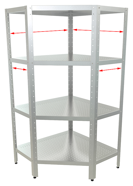 Угловой кухонный стеллаж Кобор СКПУ-4/5-100/90/430 предназначен для хранения посуды, различного инвентаря и сухих продуктов на предприятиях общественного питания и торговли. Модель оснащена перфорированными полками. Разборный каркас выполнен из уголка из нержавеющей стали AISI 430, полки - из нержавеющей стали AISI 430. Дополнительные характеристики: