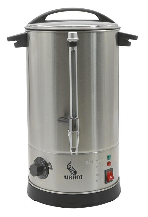 Кипятильник Airhot WBD-35 используется на предприятиях общественного питания и торговли, в офисах, отелях и т.д. для нагрева большого количества воды. Модель оснащена индикатором уровня воды, аварийным термостатом, индикатором нагрева и заменяемым закрытым ТЭНом. Корпус с двойными стенками выполнен из нержавеющей стали AISI 201/304. Дополнительные характеристики: