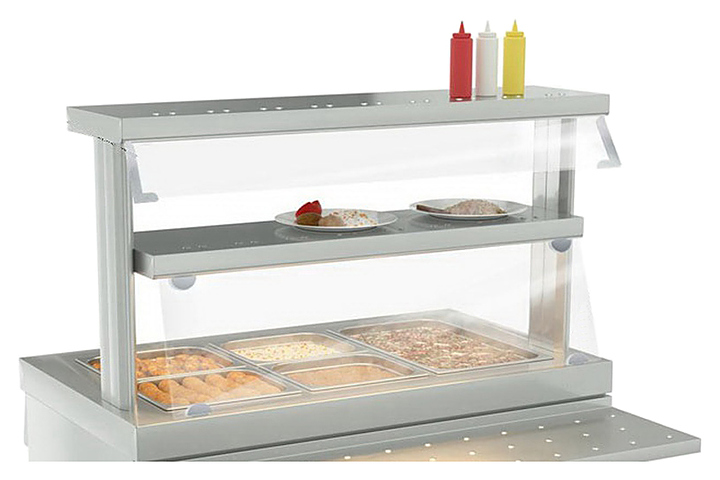 Козырек ATESY Ривьера используется на предприятиях общественного питания и торговли совместно с двух- и трехъярусными полками одноименной линии раздачи питания. Козырек позволяет защитить продукты и готовые блюда от попадания посторонних частиц и пыли. Внимание! На фото аналогичная модель другого размера. Видео