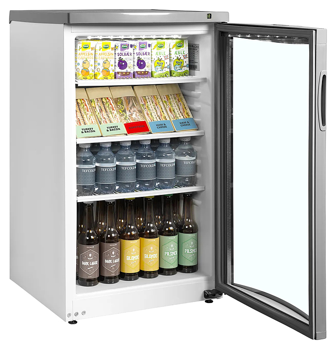 Холодильный шкаф TEFCOLD BC145 W/FAN предназначен для демонстрации, охлаждения и кратковременного хранения алкогольных и безалкогольных напитков на предприятиях общественного питания и торговли. Модель оснащена 3 регулируемыми полками-решетками, регулируемыми по высоте ножками, замком и гнутой перенавешиваемой дверью. Внутренняя обшивка выполнена из ABS-пластика, дверь - из стекла. Особенности: