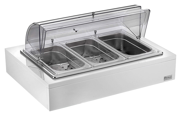 Мармит Pintinox 511B2840 используется на предприятиях общественного питания и торговли, в барах, ресторанах, кафе, частных домах и квартирах для поддержания в охлажденном состоянии фруктов, овощей, йогуртов и других продуктов. Модель оснащена откатной крышкой. Основание выполнено из древесины. В комплект поставки входят 3 гастроемкости GN 1/3. Дополнительные характеристики: