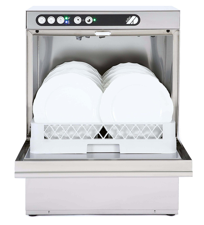 Посудомоечная машина с фронтальной загрузкой Adler ECO 35 серии Ecoline используется на предприятиях общественного питания и торговли для мойки посуды, кухонных принадлежностей, стаканов, чашек и столовых приборов. Модель оснащена механической панелью управления. В комплект поставки входят универсальная кассета и держатель для столовых приборов. Особенности: