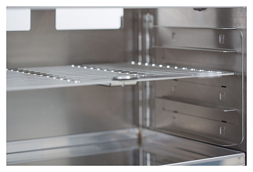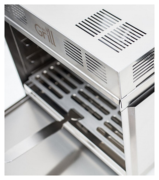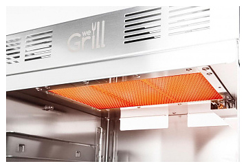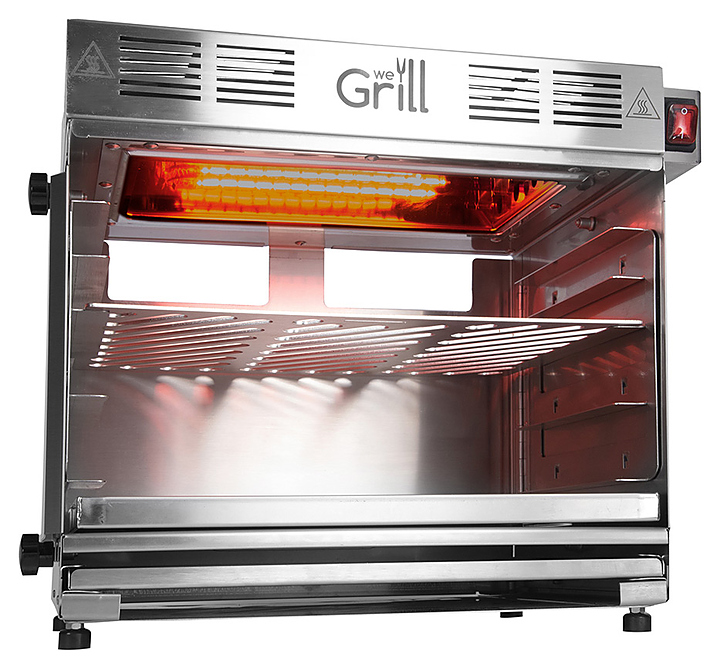 Электрический гриль-мангал WeGrill In&Out предназначен для приготовления различных блюд путем обжигания (грилливания), запекания, карамелизации, гратинирования, а также с использованием технологии Sous Vide на предприятиях общественного питания и торговли. Поверхность мяса и рыбы, обработанной таким образом, мгновенно «запечатывается»: на ней появляется нежная корочка, а весь сок и аромат остаются внутри. Модель оснащена 2 кварцевыми лампами, 2 поддонами и 5 уровнями направляющих. Корпус и поддоны изготовлены из нержавеющей стали AISI 304. В комплект поставки входит сумка для транспортировки и хранения. Особенности: