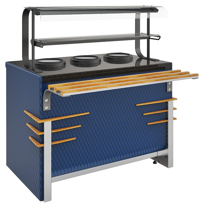 Мармит Refettorio Case RM12D используется в составе линии раздачи Case на предприятиях общественного питания и торговли для поддержания в горячем состоянии и последующей раздачи первых блюд. Модель оснащена 3 встроенными электросупницами. Столешница выполнена из нержавеющей листовой стали толщиной 1,2 мм, фасад - из ламинированного МДФ. Особенности: