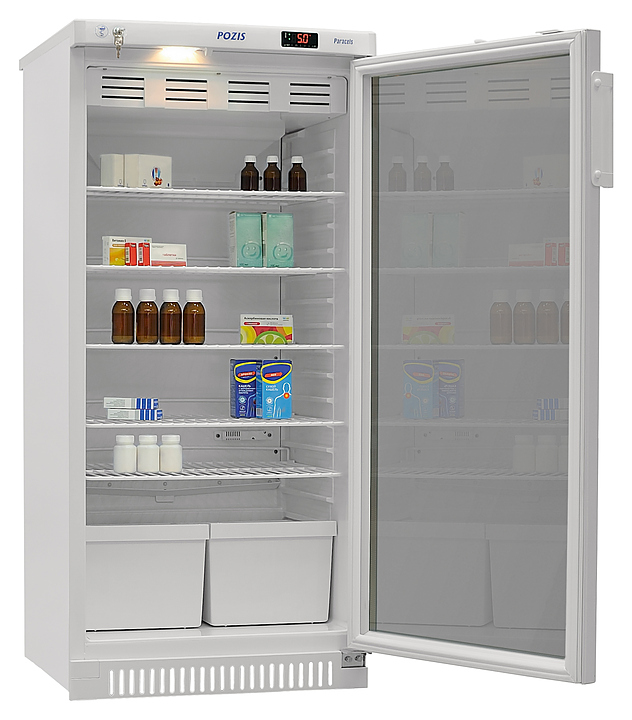 Фармацевтический холодильник POZIS ХФ-250-3 используется в аптеках, больницах и клиниках для хранения лекарственных препаратов, вакцин, реагентов и биологических препаратов. Модель оснащена дверью с тонированным стеклом, ручкой и замком, 2 роликами и 2 регулируемыми опорами. Для удобства пользования дисплей, отображающий температуру, располагается над дверью в зоне постоянной видимости. Теплоизоляция выполнена из пенополиуретана, герметизация дверного проема - из эластичного уплотнителя с магнитной вставкой. Особенности:
