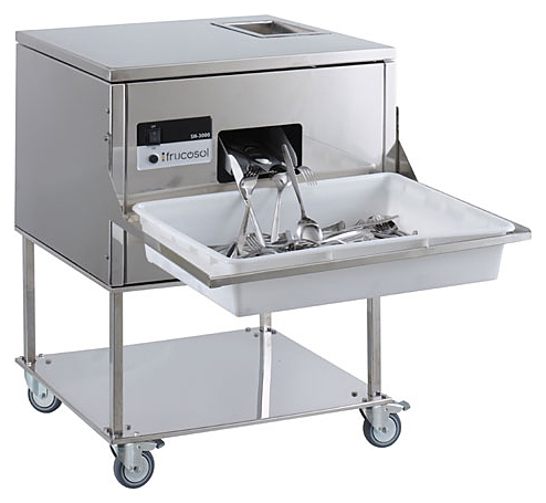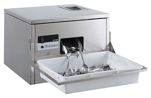 Полировщик столовых приборов Frucosol SH3000 используется на предприятиях общественного питания и торговли для сушки и полировки вилок, ложек, ножей и других столовых приборов. Машина гарантирует полное отсутствие каких-либо следов воды или извести на поверхности столовых приборов. Изделие полностью выполнено из высококачественной нержавеющей стали, отличающейся прочностью и функциональностью. Особенности: