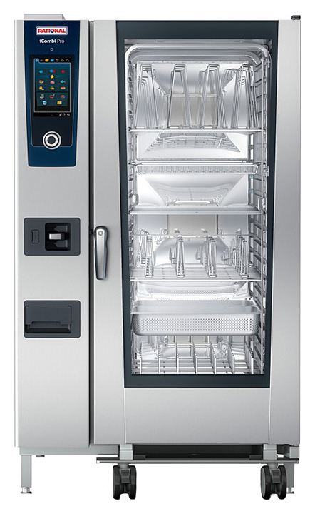 Пароконвектомат Rational iCombi Pro 20-2/1 предназначен для приготовления блюд путём жарки, тушения или варения на предприятиях общественного питания и торговли. Такое оборудование может заменить плиту, жарочный и духовой шкаф, конвекционную печь, опрокидывающуюся сковороду, пищеварочный котел и др. Модель оснащена цветным 8,5 дюймовым TFT-монитором, сенсорным экраном с самообъясняющими символами.