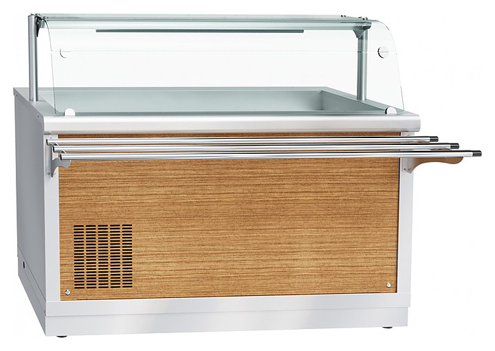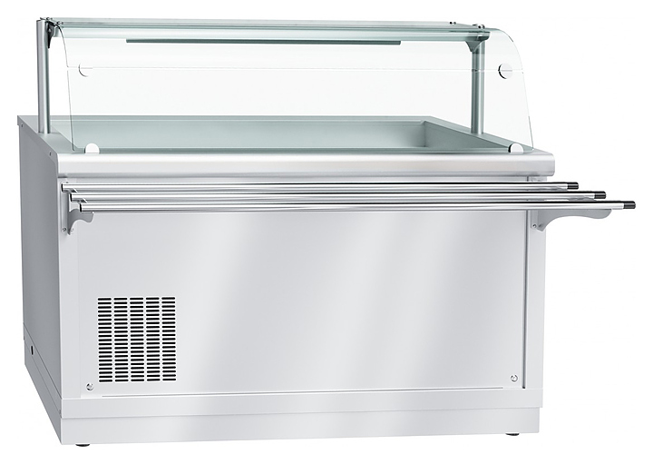 Охлаждаемый стол Abat ПВВ(Н)-70Х-01-НШ используется в составе линии раздачи HOT-LINE на предприятиях общественного питания и торговли для кратковременного хранения, демонстрации и раздачи холодных закусок, третьих блюд и охлажденных напитков потребителю. Модель оснащена охлаждаемой ванной и вместительной полкой в верхней части. Корпус и панели выполнены из нержавеющей стали. В комплект поставки входит направляющая. Особенности: