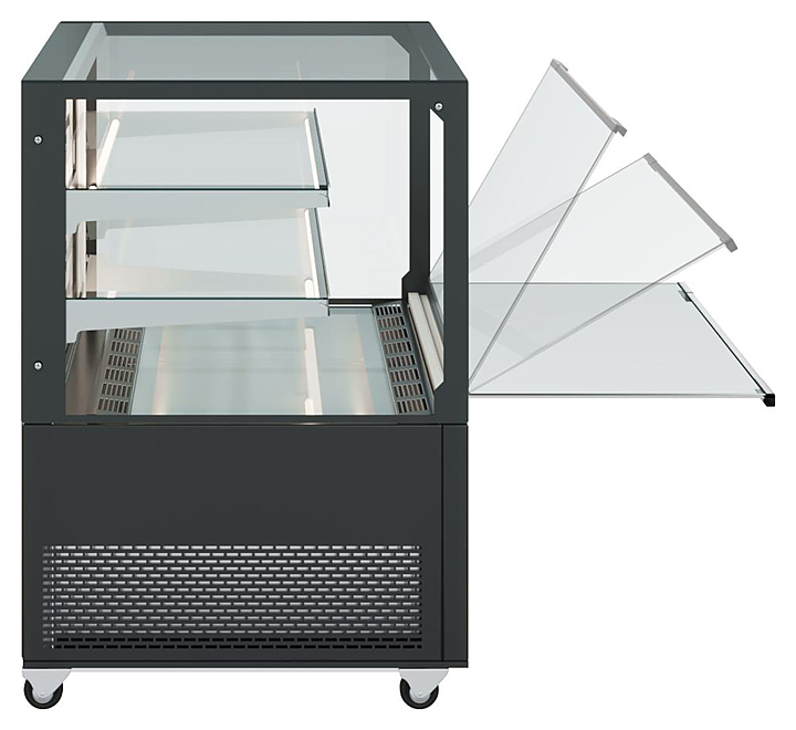 Закрытая кондитерская витрина Carboma КС84-150 VV 1,2-1 COSMO используется на предприятиях общественного питания и торговли для демонстрации, охлаждения и кратковременного хранения напитков, тортов, пирожных и других кондитерских изделий и гастрономических товаров. Модель оснащена 4-х сторонним остеклением, откидывающимся передним стеклопакетом, 4 регулируемыми по уровню стеклянными полками со встроенными ценникодержателями и регулируемыми ножками высотой от 30 до 50 мм. Корпус выполнен из стали и пластика, термоизоляция корпуса - из пенополиуретана. Особенности:
