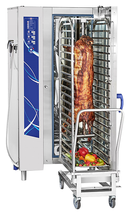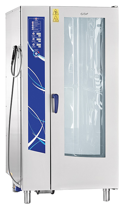 Пароконвектомат Abat ПКА 20-1/1ПМ2-01 предназначен для обжаривания, приготовления на пару, бланширования, запекания и других видов тепловой обработки продуктов на предприятиях общественного питания и торговли. Оборудование заменяет сразу несколько видов приборов: плиту, конвекционную печь, жарочный шкаф, духовку, опрокидывающуюся сковороду, пищеварочный котел, фритюрницу и др. Приготовленные в пароконвектомате блюда сохраняют все полезные вещества. Модель оснащена подсветкой, легкосъемным жировым фильтром, душем для мойки и дверью с двойным остеклением. Корпус и внутренняя отделка выполнены из высококачественной нержавеющей стали. Пароконвектомат используется совместно с вытяжным зонтом Abat ЗВВ-800. В комплект поставки входит тележка-шпилька ТП 20-1/1 на 20 гастроемкостей. Рекомендуется дополнительно приобрести водоумягчитель и фильтр-систему для очистки и смягчения воды. Подробнее о необходимости водоподготовки читайте здесь. Особенности: