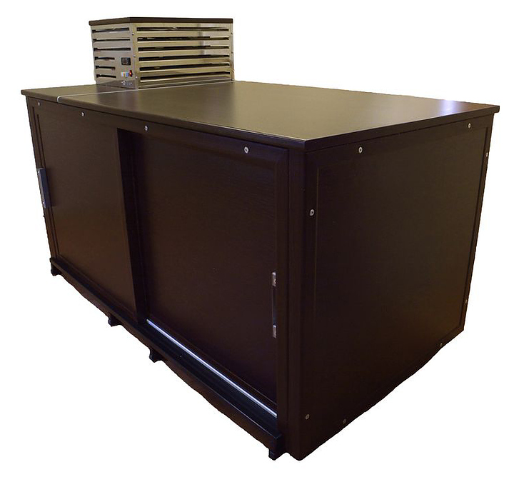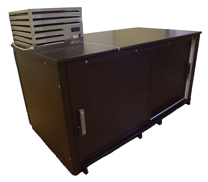 Кегератор Berk 8 кег (модель №4) представляет из себя готовую барную стойку предназначен для охлаждения и временного хранения кегов с разливным пивом, сидром, квасом и другими напитками на предприятиях общественного питания и торговли. Модель вмещает в себя 7 кег объемом 50 литров и 1 кегу объемом 30 литров, которая размещается под охладителем, прикрепленным к потолку холодильной камеры. В комплект поставки входит емкость для сбора конденсата с холодильной установки и дренажа с кранов розлива (при розливе пива в ПЭТ-тару). Особенности: