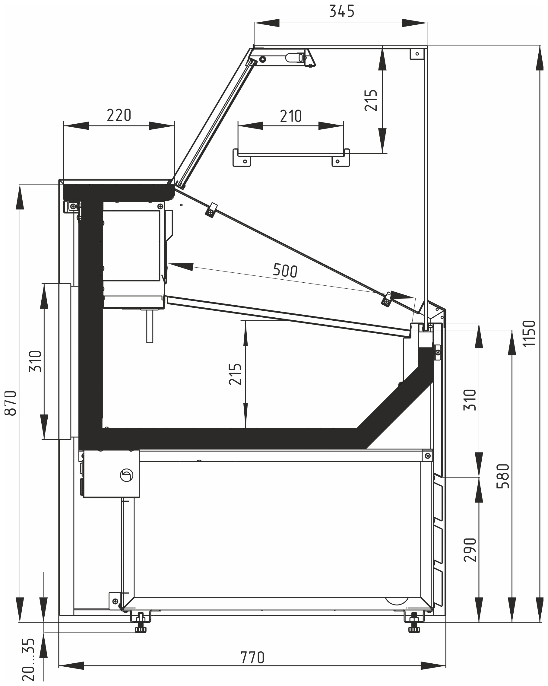 Холодильная витрина Carboma GC75 SV 1,5-1 используется на предприятиях общественного питания и торговли для охлаждения, кратковременного хранения, демонстрации и продажи продуктов питания, салатов, молочных и других гастрономических изделий. Модель оснащена дополнительным накопителем для продуктов, поддоном для выкладки и регулируемыми ножками высотой от 20 до 35 мм. Столешница, зона выкладки, боковые и нижняя фронтальная панели, обшивка светильника и испарителя выполнены из окрашенной в серебристый цвет стали, декоративная передняя панель - из выкрашенной в любой стандартный цвет стали, держатель стекла - из нержавеющей стали. Боковины и столешница покрыты пенополиуретановой теплоизоляцией. Поддон для гастроемкостей и гастроемкости GN 1/3 глубиной 150 мм в комплект поставки не входят и приобретаются отдельно. Особенности: