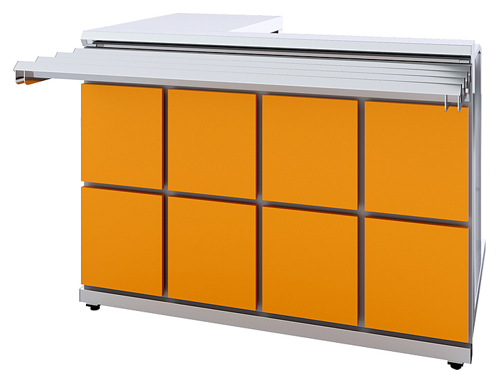 Кассовый прилавок Luxstahl КК-1200 Premium Domino используется на предприятиях общественного питания и торговли для оборудования рабочего места продавца-кассира. Модель оснащена розеткой для подключения кредитно-кассового аппарата и вместительной полкой в нише. Каркас выполнен из нержавеющей стали AISI 430 толщиной 1 мм, фасад - из ЛДСП, направляющая для подносов - из профильной трубы 25х25 мм. Особенности:
