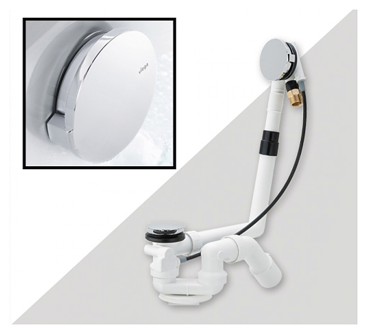 Механический слив-перелив с наполнением RIHO VIEGA Multiplex Trio AVT70 используется с ваннами Atlanta, Austin, Carolina, Castello, Colorado, Columbia, Delta, Doppio и других серий. Аксессуар обеспечивает спуск воды из ванной в канализацию, предохраняя ее от переполнения. Изделие выполнено из качественной латуни, стойкой к воздействию воды и высоких температур и пластика. Дополнительные характеристики: