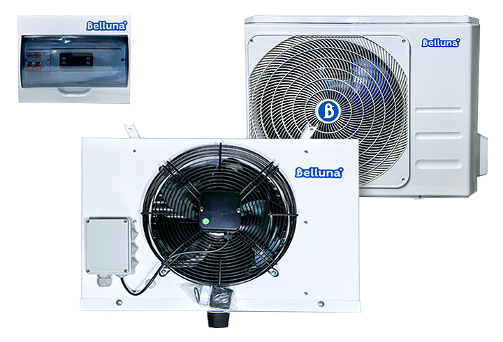 Холодильная сплит-система Belluna U205 серии Универсал предназначена для поддержания необходимого температурного режима в холодильных камерах на предприятиях пищевой промышленности, общественного питания и торговли. Холодильная машина состоит из внутреннего блока-воздухоохладителя и наружного блока. Для работы сплит-системы толщина пенополиуретановых панелей в холодильной камере должна быть не менее 80 мм. Особенности: