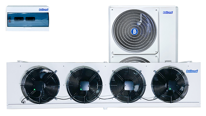 Холодильная сплит-система Belluna U314 серии Универсал предназначена для поддержания необходимого температурного режима в холодильных камерах на предприятиях пищевой промышленности, общественного питания и торговли. Холодильная машина состоит из внутреннего блока-воздухоохладителя и наружного блока. Для работы сплит-системы толщина пенополиуретановых панелей в холодильной камере должна быть не менее 80 мм. Особенности: