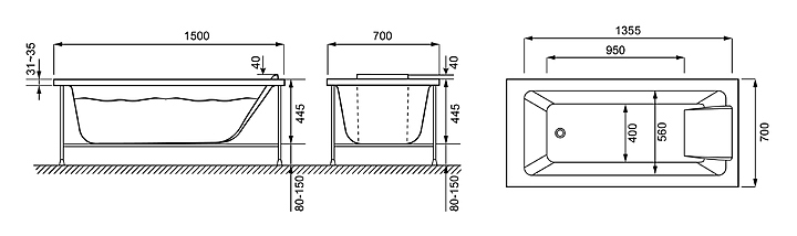 Ванна Jacob Delafon SOFA E6D300RU-00 150х70 см, акрил