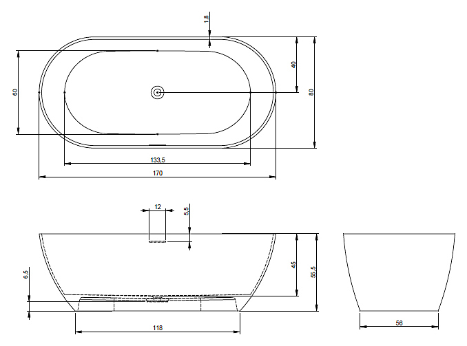Ванна RIHO BILBAO 170х80 см, искусственный камень