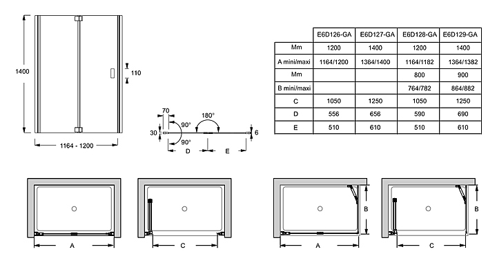 Экран Jacob Delafon CAPSULE E6D129-GA 140х90 см