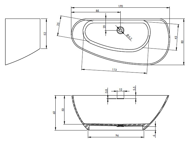 Ванна RIHO GRANADA L 170x80 см, искусственный камень