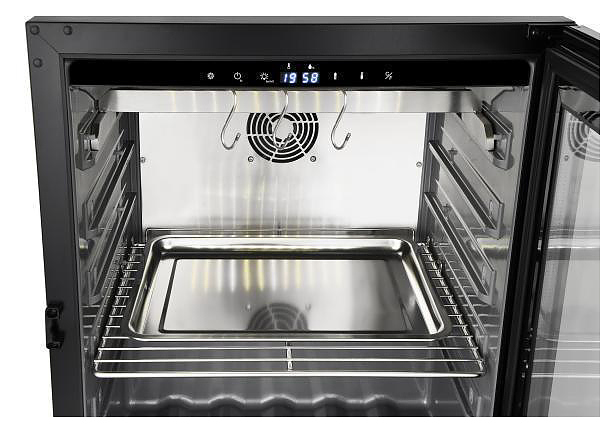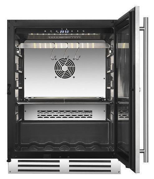 Шкаф для мяса MeatAge VI46 предназначен для охлаждения и вызревания мяса, ветчины и салями в частных домах, квартирах, отелях и офисах. Модель оснащена акустической сигнализацией и запираемой дверью. Корпус и комплектующие выполнены из нержавеющей стали AISI 304, дверца - из ударопрочного закаленного стекла. Комплектация: