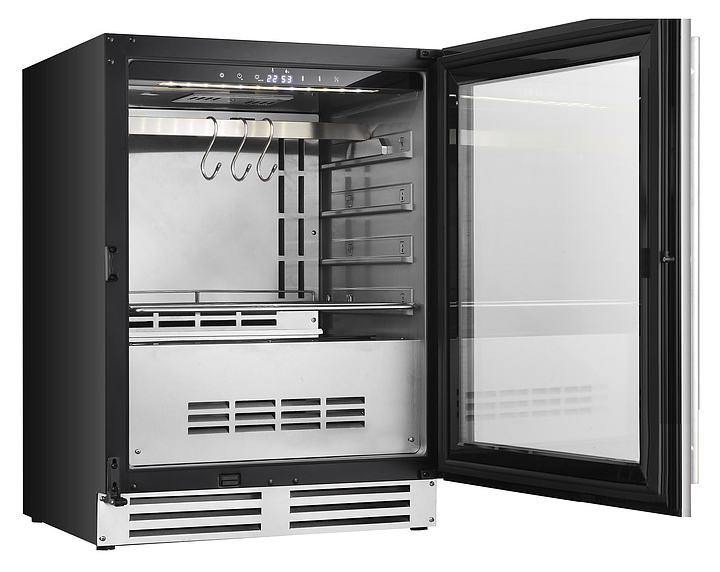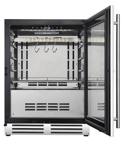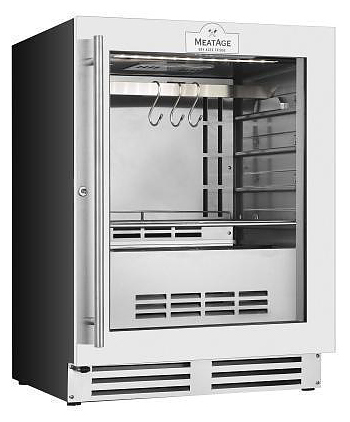 Шкаф для мяса MeatAge VI46 WT предназначен для охлаждения и вызревания мяса, ветчины и салями в частных домах, квартирах, отелях и офисах. Модель оснащена акустической сигнализацией и запираемой дверью. Корпус и комплектующие выполнены из нержавеющей стали AISI 304, дверца - из ударопрочного закаленного стекла. Комплектация: